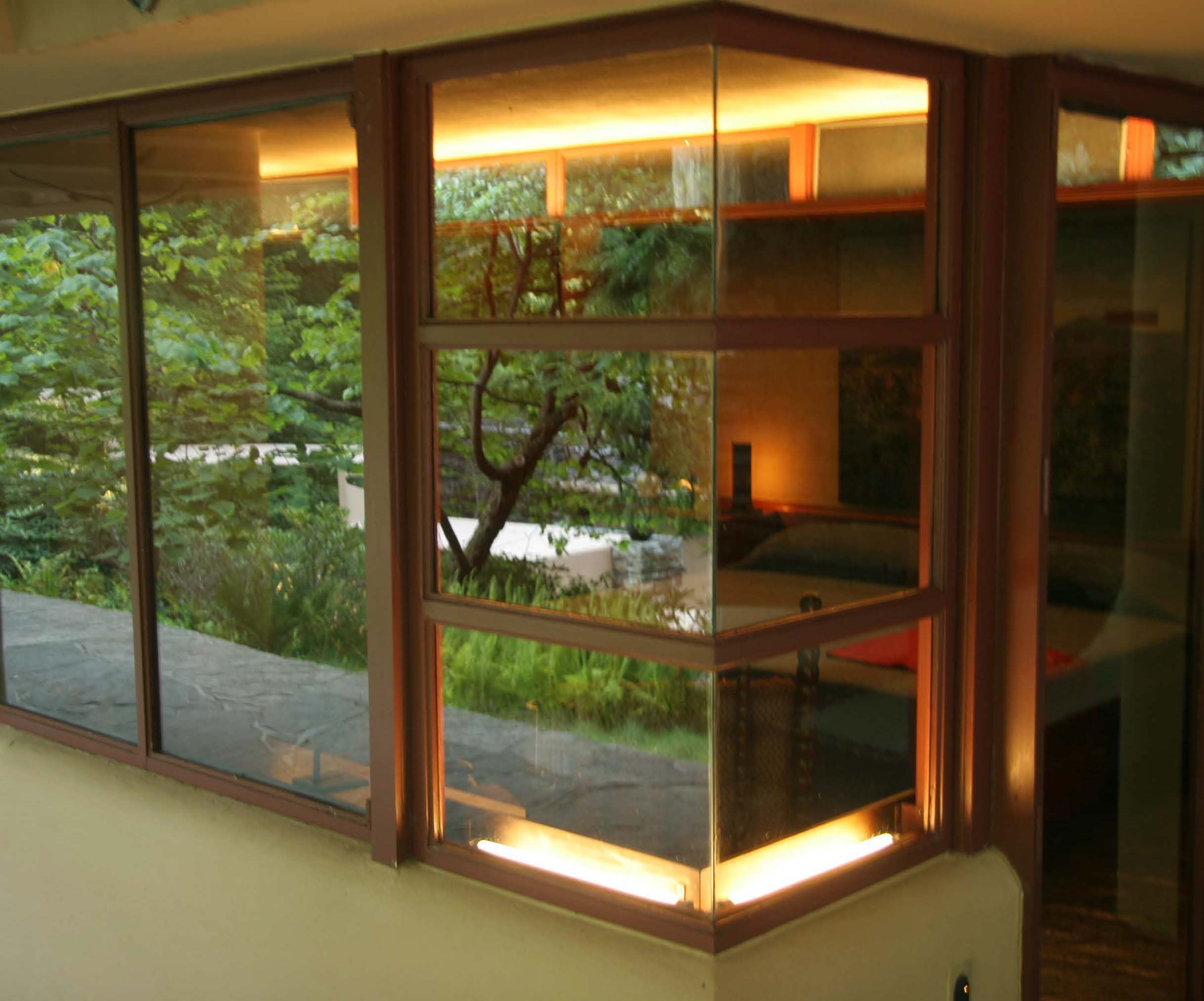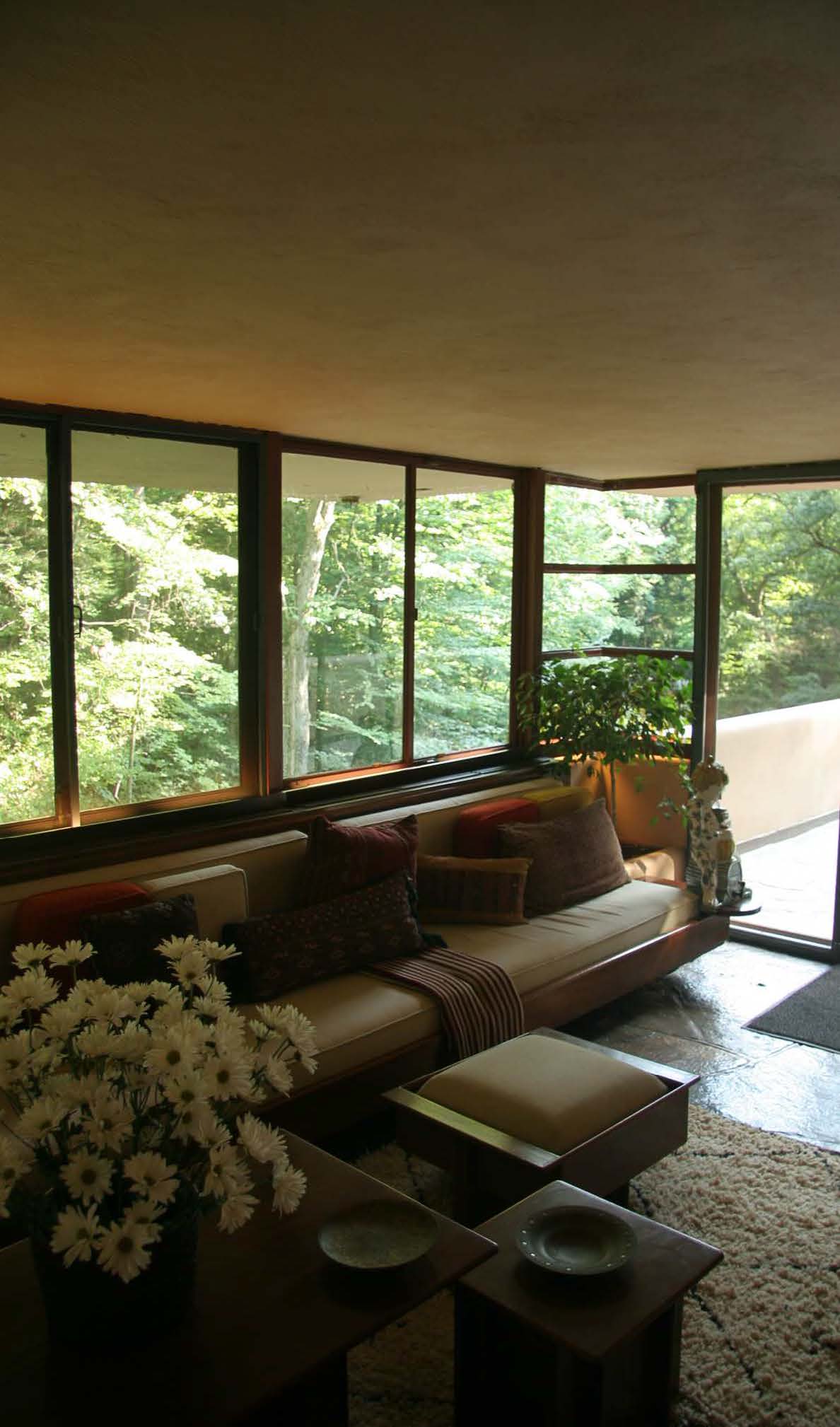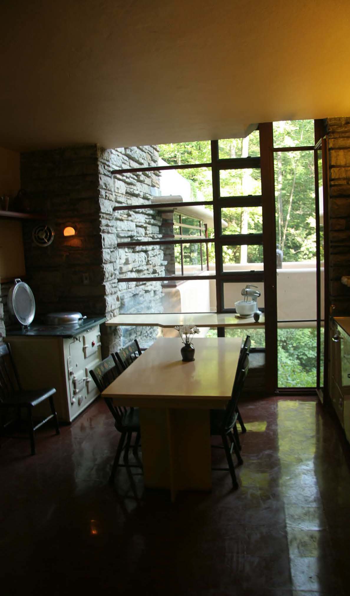The Blum House by Wright’s pupil Peter Berndtson, where we stayed for two nights, was the exact opposite––a simple unpretentious bungalow, flooded with sunlight, geometric shadows, and teasing reflections, with magnificent views of the Chestnut Ridge Mountains in the distance.