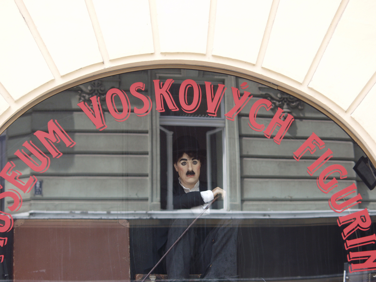 #1 Waxworks Museum, Melantrichova St #2 Rudolf Kremlička, mural in Fénix Palace arcade, Wenceslas Square #3 Prague Castle #4 Jan Štursa, statues on facade of Adria Palace, Jungmannovo náměstí. Prague, June 2004.