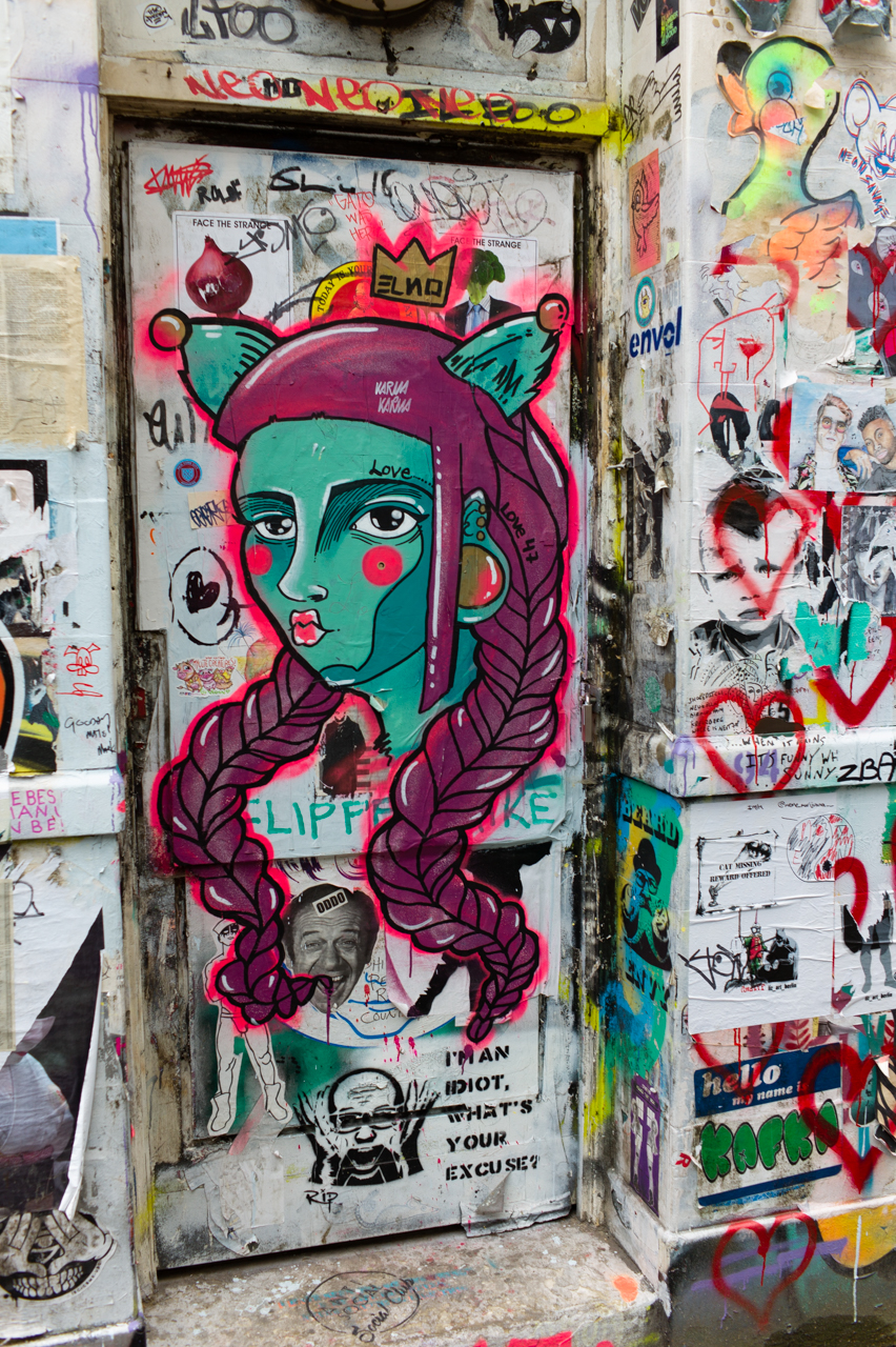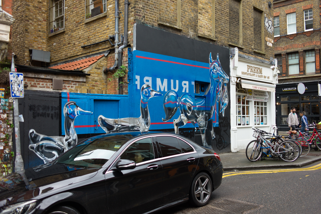 Whenever we are in London (where I was born) we try to visit Brick Lane in Whitechapel, an area we have watched gentrifying over the years with mixed feelings. But so far, the ever-changing graffiti remains a reliable constant. These images were shot on April 27, 2018.